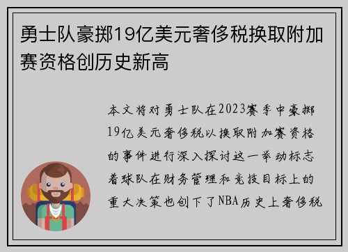 bwin必赢平台以其可靠的报道和广泛的赛事覆盖,成为了众多体育迷和广告商的首选合作伙伴。公司致力于为客户提供专业的体育资讯服务,并不断探索新的商业模式,以满足市场的多样化需求。赛事通将继续秉承“客户至上、创新超越”的经营理念,为体育迷和合作伙伴提供更加优质的服务和合作机会。