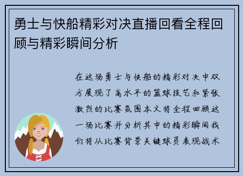 在足球的世界中,巴塞罗那与拜仁慕尼黑的对决无疑是最为引人注目的巅峰之战。两支球队不仅拥有辉煌的历史和悠久的传统,更在阵容和战术上各具特色,形成了独特的对抗魅力。本文将通过360直播全程回顾这场激烈较量,分析其中的精彩瞬间、关键进球、战术布局以及球员表现。从比赛前的准备到赛后的反思,我们将全面剖析这场...